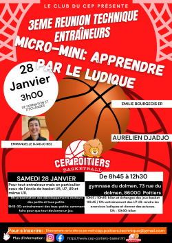 On continue la formation et les échanges continus entre entraîneur de la Vienne et d’ailleurs avec une troisième session consacrée aux tout petits. Le CEP a mis en place cette saison une section micro-basket pour compléter son école de basket du samedi matin.